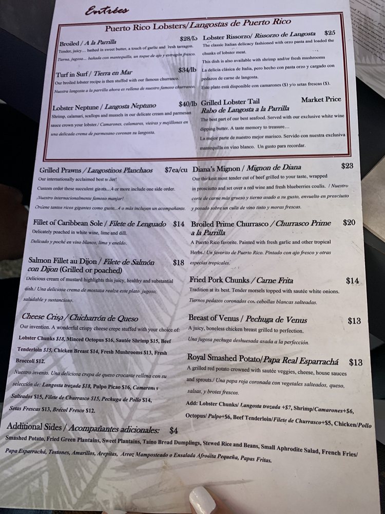 Ostra Cosa, a Spanish-Caribbean seafood restaurant located in San Juan, Puerto Rico, offers a diverse menu with many vegetarian options. With a full bar, outdoor seating, and live music, this restaurant is perfect for a casual dining experience. Customers rave about the delicious food, including the salmon with mofongo and the chuleta can can. Despite a few negative reviews regarding pricing and service, the overall consensus is positive, praising the excellent service and ambiance. If you're looking for a great dining experience in Old San Juan, Ostra Cosa is a must-visit spot.